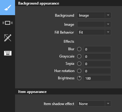 - Item Appearance defines the background appearance of the Scene: Property available on Layers since IntuIFace 6.0 and above.
