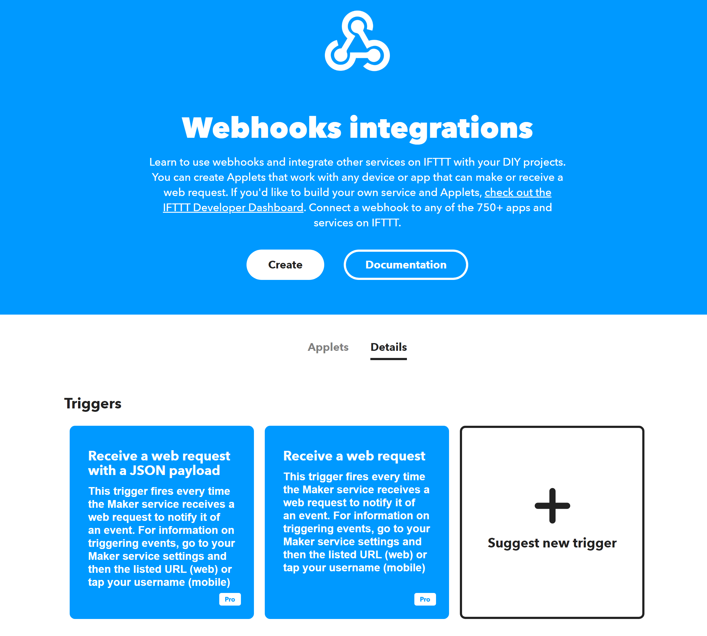 NOTE: using IFTTT Webhooks will require you to upgrade to their Pro plan.
