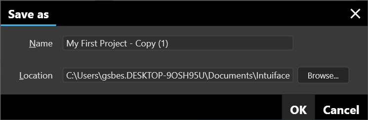 - In Composer, select the menu option File -> Save As... and give the project copy a name. When you're happy with the name, click the OK button.